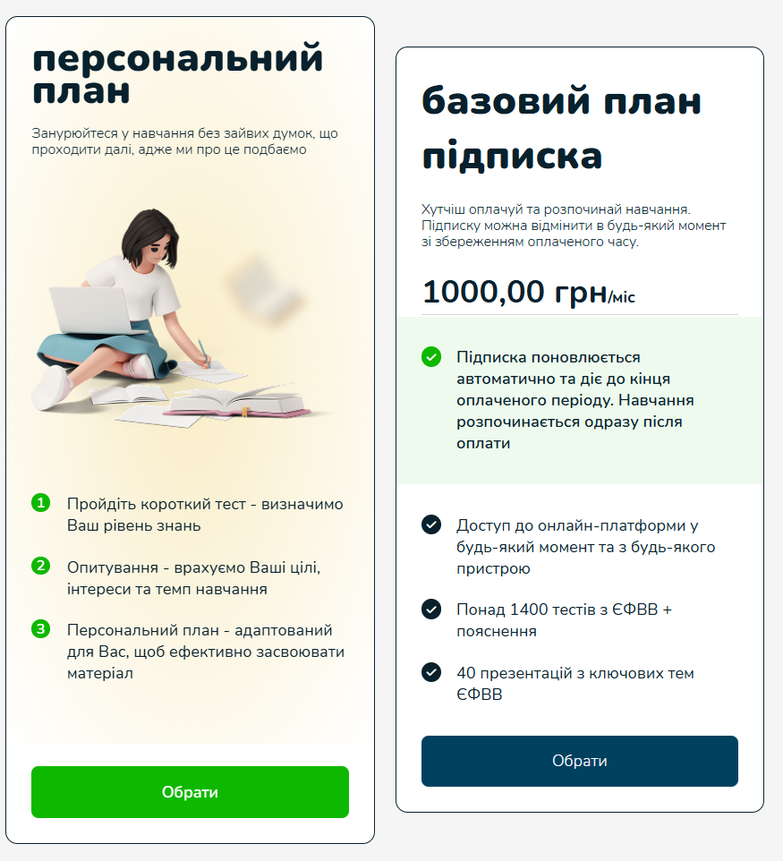 Вартість місячної підписки на матеріали платформи, що містять теорію, тести з поясненнями, презентаційні матеріали та багато іншого вказана в секції “Обрати курс” на цій сторінці.